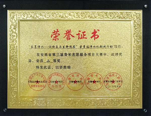 “樂享凈水,讓快樂與生命同在”助殘行動由合肥榮事達水工業設備有限責任公司與安徽省青年志愿者協會共同發起,通過向康復中心、特殊學校、福利院等助殘機構捐贈凈水設備以及提供志愿者服務來改善當地殘障人群的飲水條件。自活動開展以來,公司已年均援助助殘機構約200個,捐贈凈水設備約600臺,開展各類幫扶活動約150次,受惠殘疾人口10000人,贏得了各地區良好的口碑與認可,同時獲得安徽省第三屆青年志愿服務項目大賽二等獎殊榮。