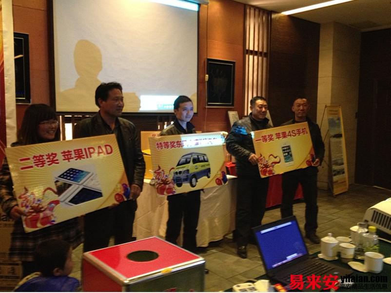 會議還安排了訂貨抽獎環節,東風汽車、iphone4sipad、格蘭仕滾筒洗衣機等豐厚的獎品激發了與會經銷商的訂貨熱情。一位來自天長的新客戶場訂貨達37萬 幸運抽中汽車大獎。