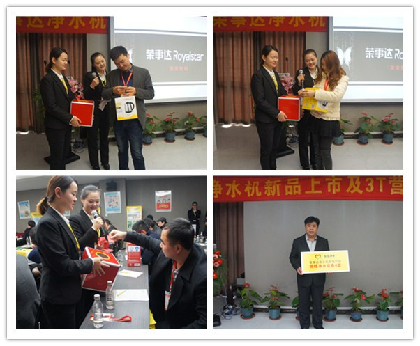 為應對2016凈水市場快速發展的要求,榮事達精心推出R8櫥下智能純水機、箱體LED純水機、速熱飲水機等多款新品,適應細分市場需求,助力終端網點提高市場占有率。在隨后的新品培訓環節,榮事達渠道開發部王部長和董部長對新品功能特點、市場定位進行了詳細講解。新款純水機配備RO反滲透技術及五級過濾系統,融智能顯示、自動化沖洗、防漏水設計于一體,并為用戶提供了櫥上、櫥下安置的不同選擇;新款飲水機采用厚膜加熱管原理,三秒即熱,并可實現多檔水溫水量調節,使得家庭飲水更方便。新品踐行了榮事達產品定制的研發理念,類型多樣,既包含了可攻克農村地區水壓不足不穩狀況的自吸增壓凈水機,也囊括了滿足城市居民追求健康時尚消費需求的高端機型,參會客戶通過了解,紛紛表示定制新品市場定位準確,前景極為廣闊。